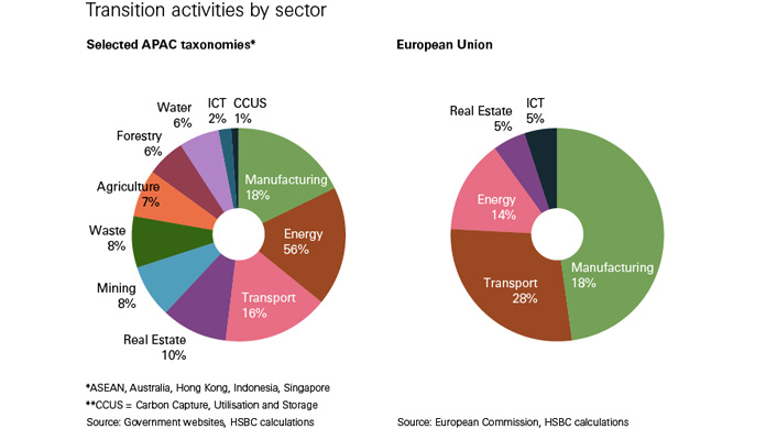 APAC has sizable climate financing needs; the IMF estimates the gap to be around USD800bn annually for emerging Asia alone. Bond markets are currently the region’s largest source of private climate capital, and although a range of issuer types are active in the labelled bond market, some of the most carbon-intensive industries are less well represented. Growing focus on the net-zero transition by the region’s financial regulators and finance ministries has led to broad adoption of sustainable finance taxonomies, which quantify and measure green and transition activities in the context of local economies.