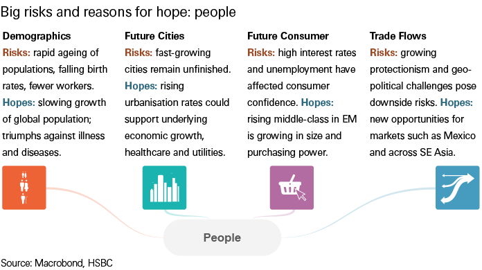 In terms of demographics, the rapid ageing of the world’s population creates fiscal headaches, but slower global population growth could lessen the pressure on natural resources and infrastructure. Part of the reason for this shift is the ultimate good news: people are living longer, healthier lives.