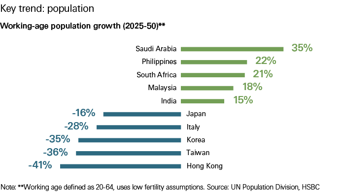 The impact across the world will also be uneven from each of these shocks – both by sector and economy. Some areas could see huge support from digitisation and favourable demographics, whilst others could see the catastrophic impact of climate change or structural fiscal strains. This creates an even tougher world for policymakers, businesses, and investors – but one where it is important to be aware of the various underlying changes in the global economy and how they can influence the pace and shape of global growth.