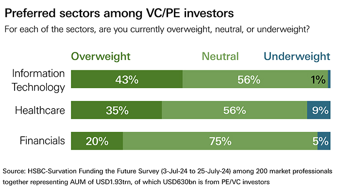 Indeed, most investors now see the rate environment as a VC tailwind versus a headwind previously, as the majority of VC and listed investors now anticipate a rate cut in the US in the coming months. Expectations of initial public offerings (IPOs) are on the rise, with artificial intelligence (AI) investments being the most likely exits.
