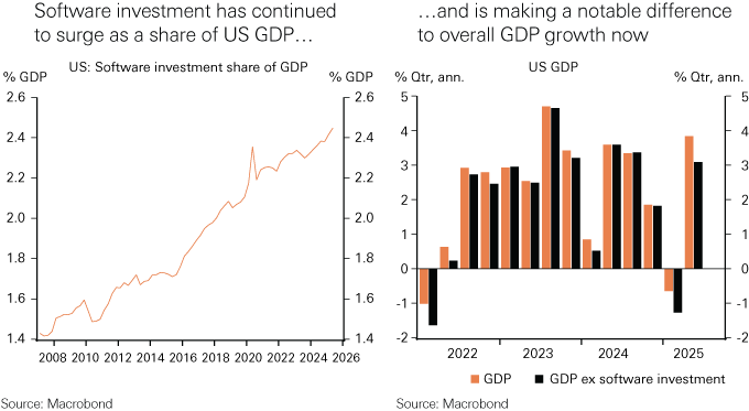Still, AI adds to any pre-existing weakness, and already appears to be putting downward pressure on hiring. In any cyclical downturn, we could see firms accelerate cost-cutting more quickly – meaning that the impact of AI on the broader labour market could continue to grow as a result.