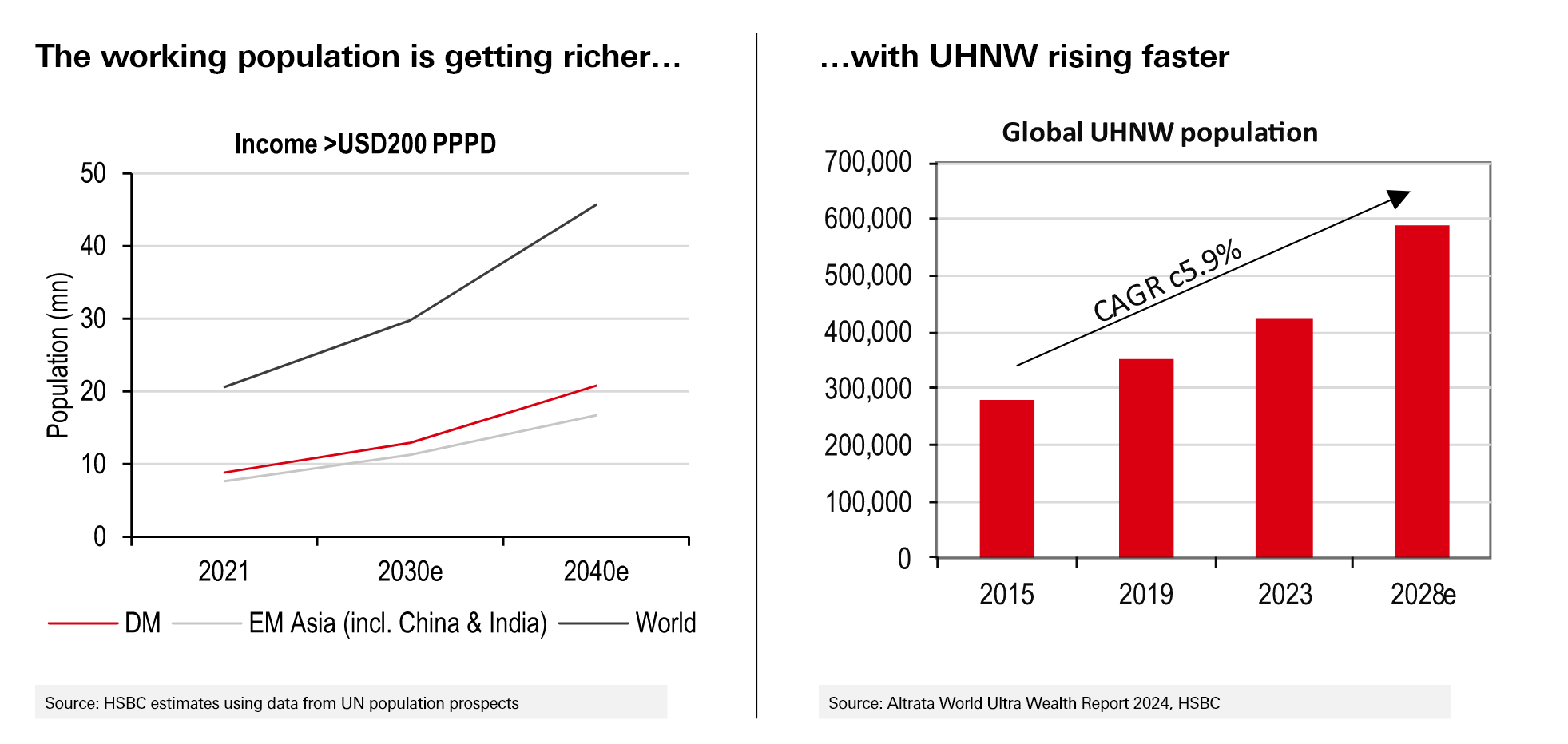 Note: Ultra high net worth (UHNW) refers to individuals with a net worth in excess of USD30m. Their total assets in 2024 were cUSD49trn (more than US and China total GDP).