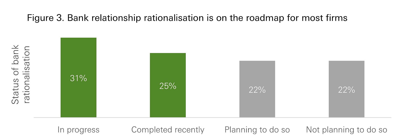 A third of corporates already operate an IHB for cash pooling, group funding and FX management, while another fifth plan to establish one. Automated pooling gives treasuries central oversight, cuts banking costs and minimises overdrafts. Businesses with automated pooling are 22 times more likely to channel investments through the treasury centre and three times more likely to fund subsidiaries internally. Reducing reliance on external financing strengthens liquidity control and frees working capital across the enterprise.