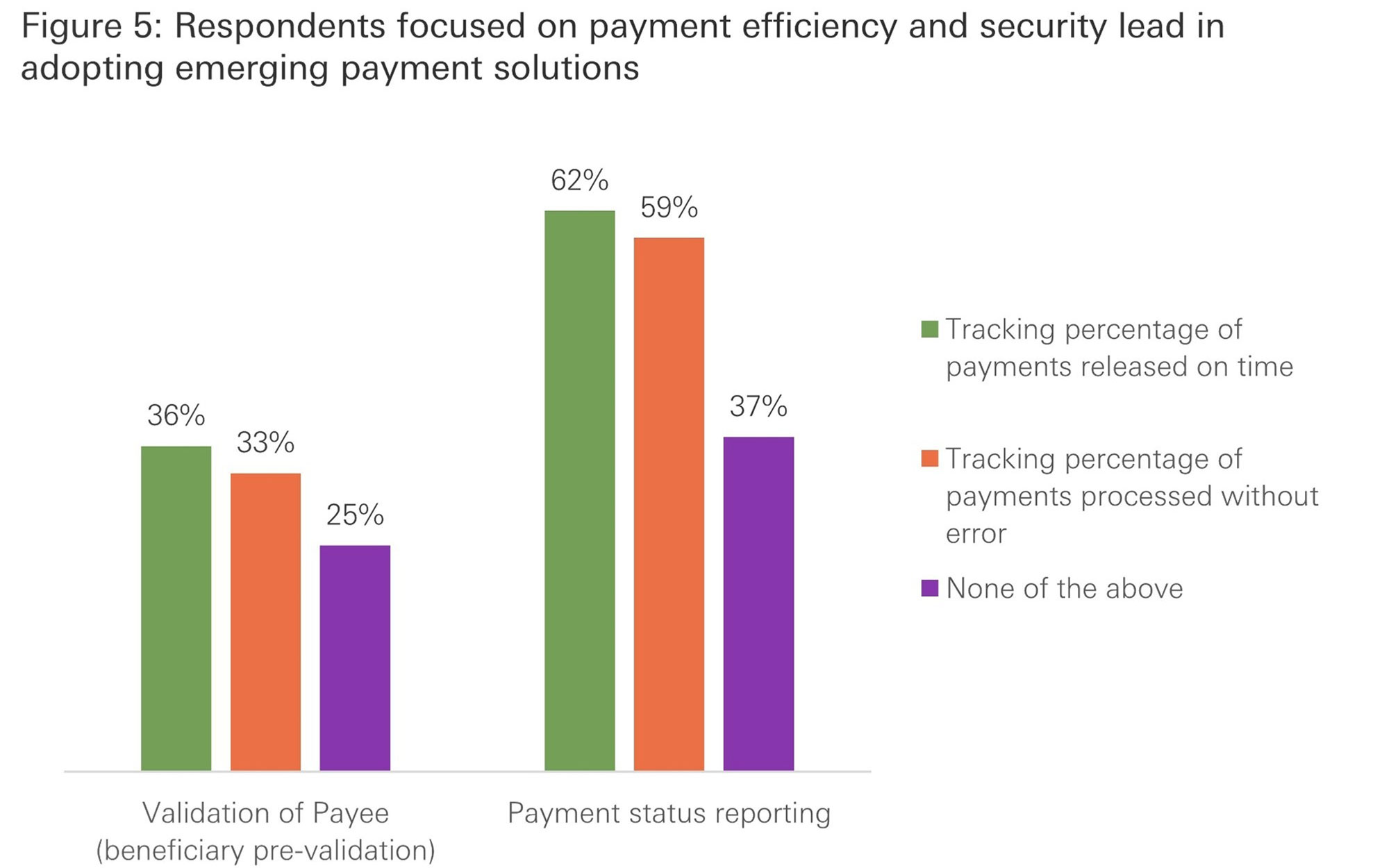 Payments sit at the core of treasury transformation and are the most frequent touchpoint between banks and corporates. Payment efficiency and security now rank among top priorities. Features such as payment-status reporting and payee validation reduce errors and fraud risk. Over 60% of treasuries have adopted or plan to adopt these tools within two years.