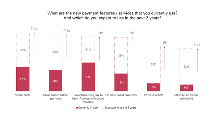 4. Tapping into payments industry innovation to futureproof the treasury and the wider business: Payment efficiency and security are top priorities for treasuries aiming to reduce errors and streamline costs. Emerging solutions like tokenisation, embedded payments, and pay-into-wallets are set to surge fivefold in adoption over the next two years. These technologies promise faster, more secure transactions, reducing fraud and operational risks while enhancing cash flow visibility.