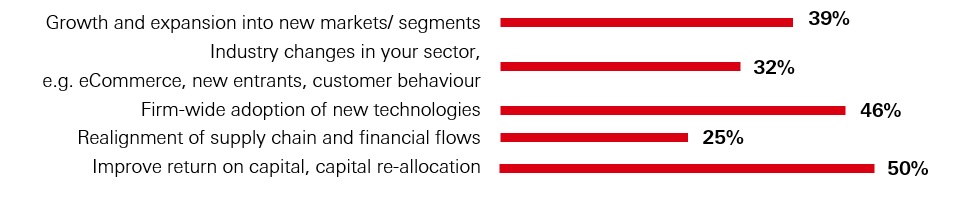 When asked about their top priorities for the year, return on capital and implementing technology are bigger issues for treasurers than the realignment of supply chains.