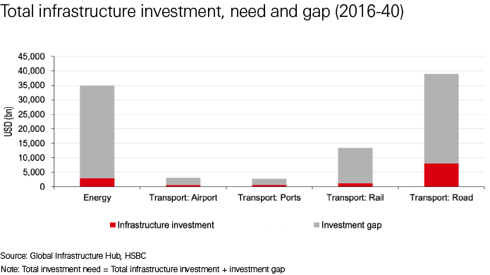 In the full report, we identify the role that infrastructure plays in the net-zero transition, focusing on power and transport infrastructure, which have the largest investment needs at USD3.2trn annually by 20404 . On balance, we expect that the economics and pressing demand for infrastructure upgrades and rollout will be the key driver of the pace of execution. We also expect diversification of the sources of capital that fund infrastructure towards SWFs.