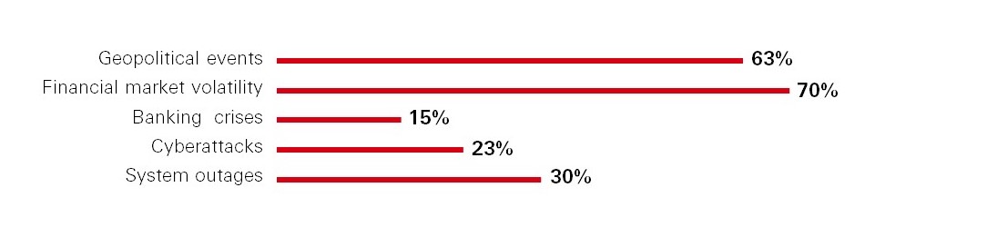 Differentials in external borrowing costs are changing: treasurers report the attraction of Japanese yen (JPY). But in all cases liquidity and availability of affordable hedging must also be considered. Given these variables, it is no surprise treasurers in China report financial market volatility as their biggest risk.