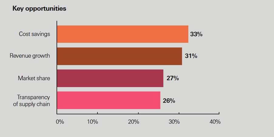 Industrials and chemicals companies also recognise that the transition will present a broad range of business opportunities. Respondents point to the potential for revenue growth, improved supply chain transparency and risk mitigation. Cost savings and efficiency gains are especially important in the Americas region, with 40% of businesses citing this as a top-three opportunity.
