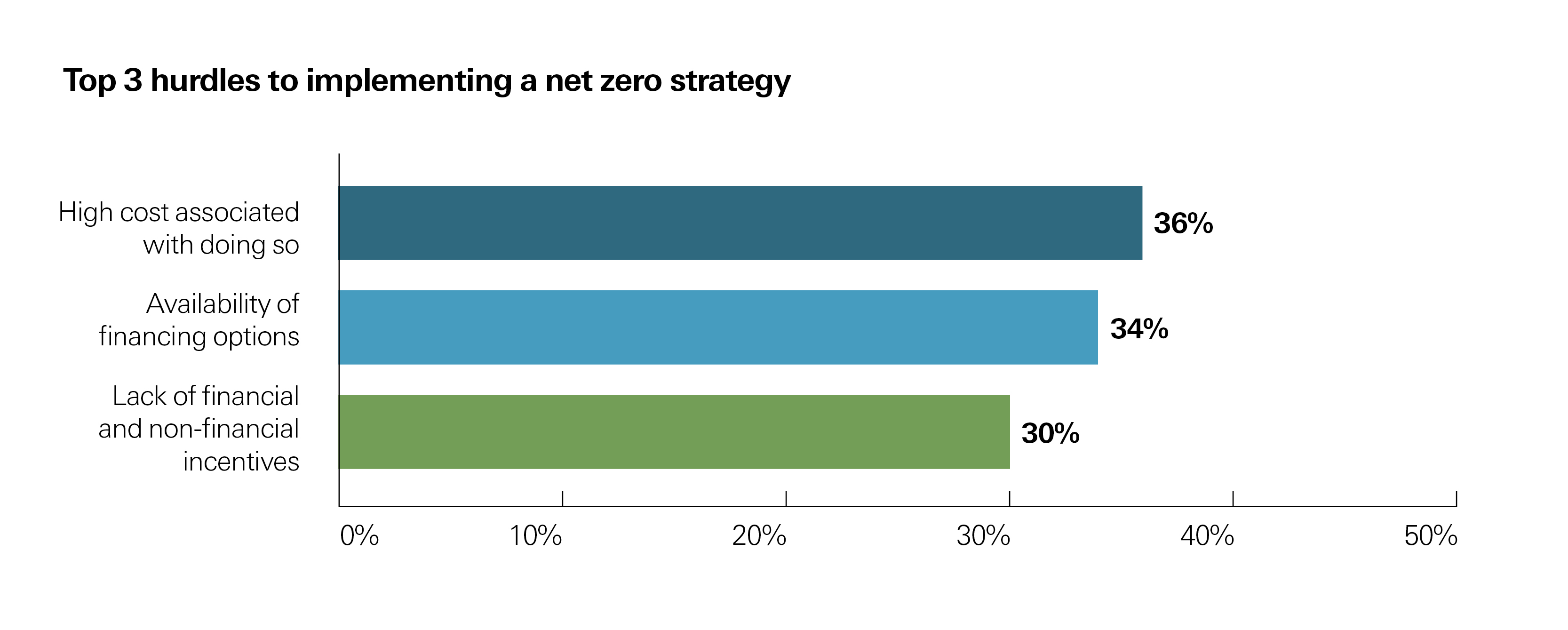 Financing is a huge hurdle. Almost half (47%) of companies that have yet to commit to a transition plan state that high costs are holding them back. Even energy companies that identify themselves as progressive, with a dedicated reporting plan, are held back from further action by high costs and the lack of availability of financing.